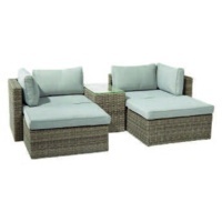 Polyratan, svetlo sivá/piesková, 5dielna - 2 x kreslo, 2 x taburet, 1 x stolík, vrátane polstrov, rozmery v zloženom stave 128 x 71 x 93 cm. OBI č. 1336221