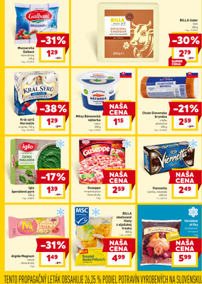 - BILLA čedar blok 200 g v akcii, so zľavou 30%, za 2,79 € .