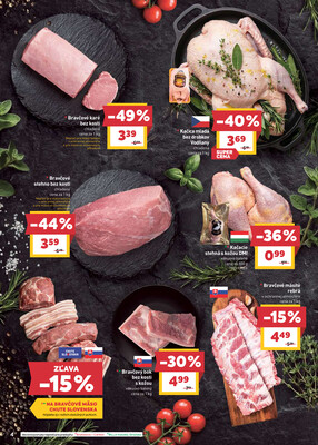 - Bravčový bok bez kosti s kožou vákuovo balený cena za 1 kg v akcii, so zľavou 31%, za 4,99 € .